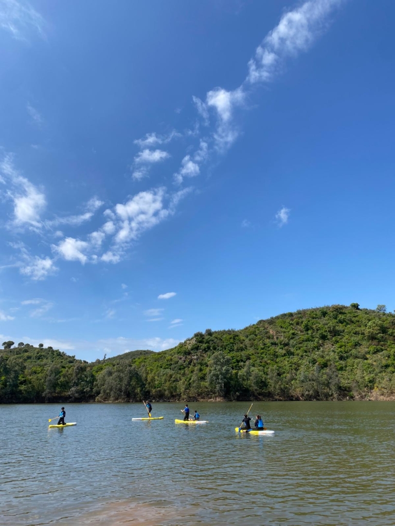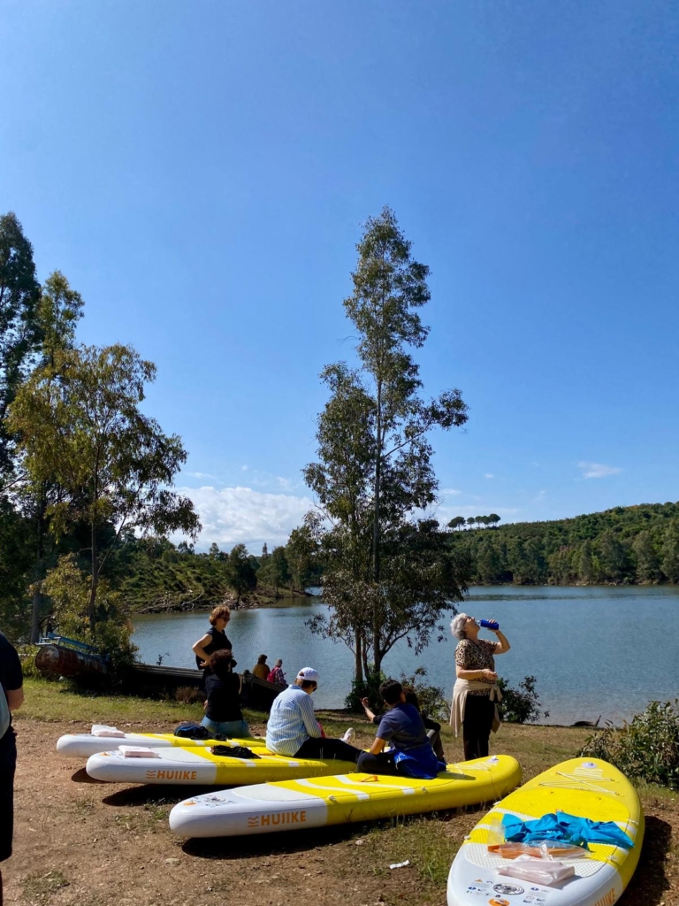 A las 11:30 h el grupo se calzó chalecos y remos para iniciarse en el paddle surf en aguas tranquilas: una experiencia que acercó a ambas generaciones a una disciplina acuática mientras reforzaba la cooperación y el aprendizaje mutuo.