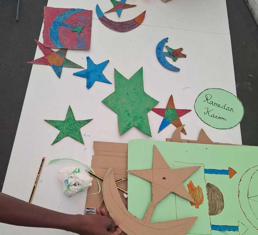Durante la actividad, los participantes tuvieron la oportunidad de compartir sus costumbres y anécdotas sobre el significado del Ramadán en sus vidas, creando un espacio de diálogo y convivencia enriquecedor. Al mismo tiempo, elaboraron decoraciones que fueron posteriormente dispuestas en las instalaciones del recurso, permitiendo que la esencia de este mes especial estuviera presente durante toda la celebración.