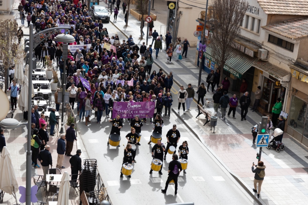 Más de setecientas personas han participado en la marcha “Guadix en marcha por la igualdad” para celebrar el Día Internacional de la Mujer. Una marcha que ha tenido gran aceptación y ha sido encabezada por la batucada Arte Samba que le ha dado un toque dinámico y vivaz. Durante el recorrido se ha podido disfrutar de la decoración con mariposas moradas hechas en el Centro Especial de Empleo “Inclúyete” vinculado a La Asociación en Favor de las personas con Discapacidad Intelectual “San José”. Al final del recorrido se ha leído el manifiesto elaborado por el Consejo Municipal de la Mujer junto a las intervenciones de representantes de las asociaciones de mujeres, responsables municipales y el propio alcalde de Guadix, Jesús Lorente.