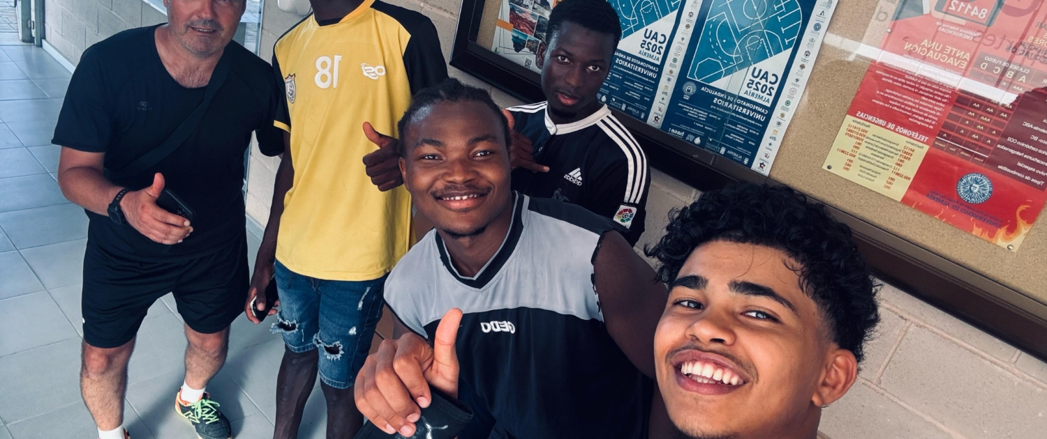 Jóvenes del recurso participan en una jornada deportiva y de convivencia junto al orientador del programa en la Universidad de Almería