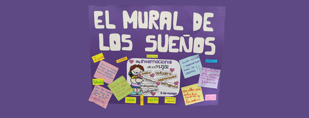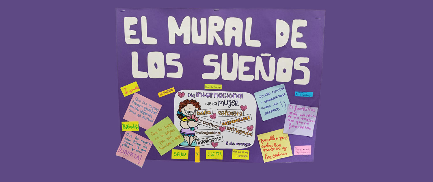 En este mural, los participantes han plasmado mensajes positivos y reflexiones sobre la igualdad de género, pegando frases alrededor de una imagen central con mensajes inspiradores hacia las mujeres. Algunas de las frases destacadas fueron: