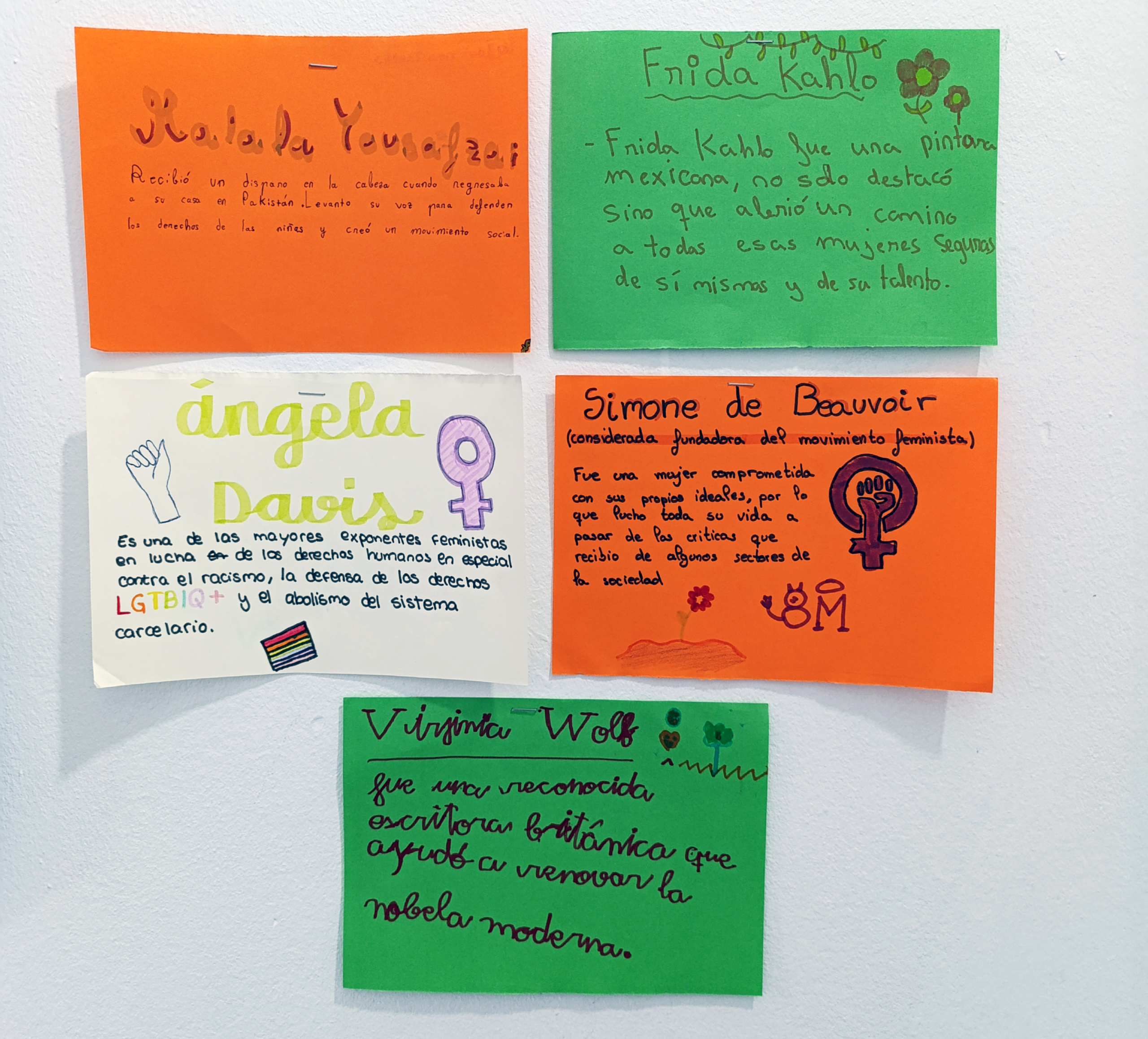 A través de la búsqueda de información, escribieron en pequeñas cartulinas sus logros y contribuciones, fomentando así la reflexión sobre el papel de la mujer en la historia y la importancia de la lucha por la igualdad.