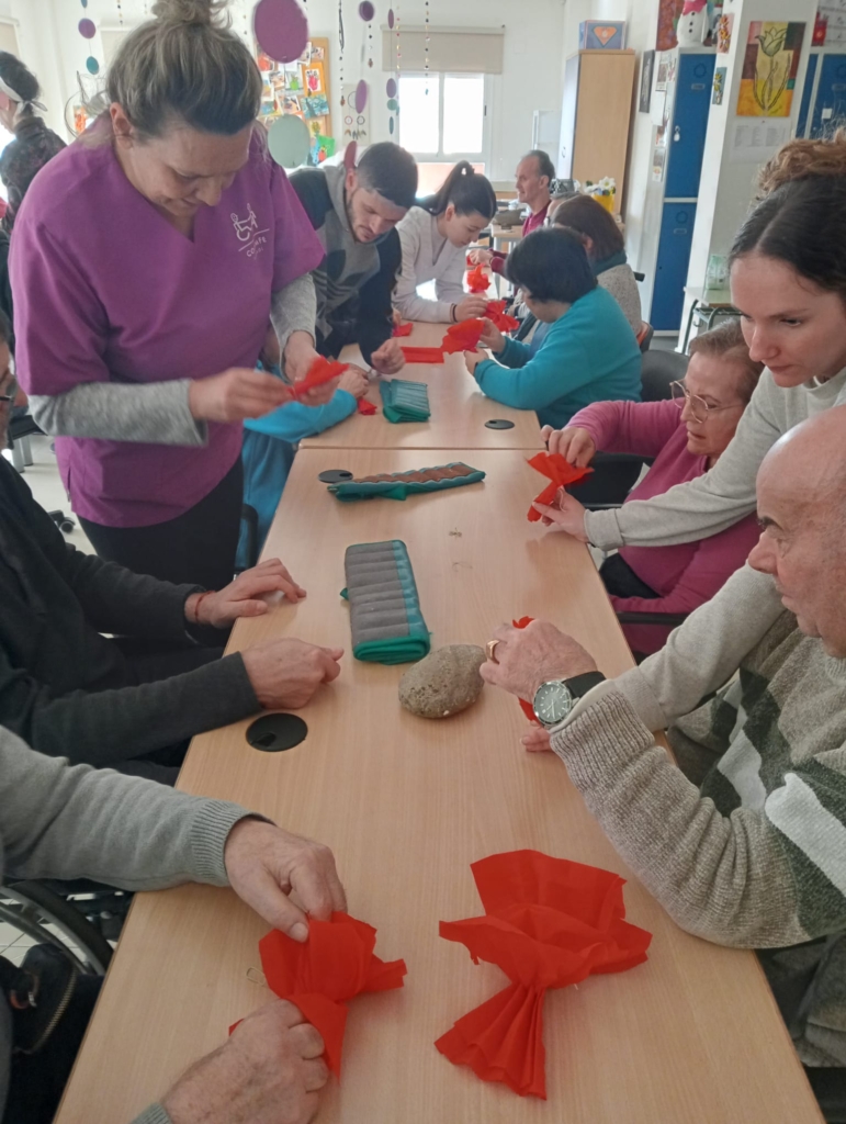 La mañana transcurrió en un ambiente de alegría y encuentro. Las personas participantes disfrutaron bailando y escuchando música típica andaluza, implicándose en cada actividad y compartiendo momentos de diversión, compañerismo y celebración colectiva. La combinación de talleres manuales, tradición y música permitió crear un espacio cuidado en el que la cultura se vivió desde lo cotidiano, lo participativo y lo comunitario.