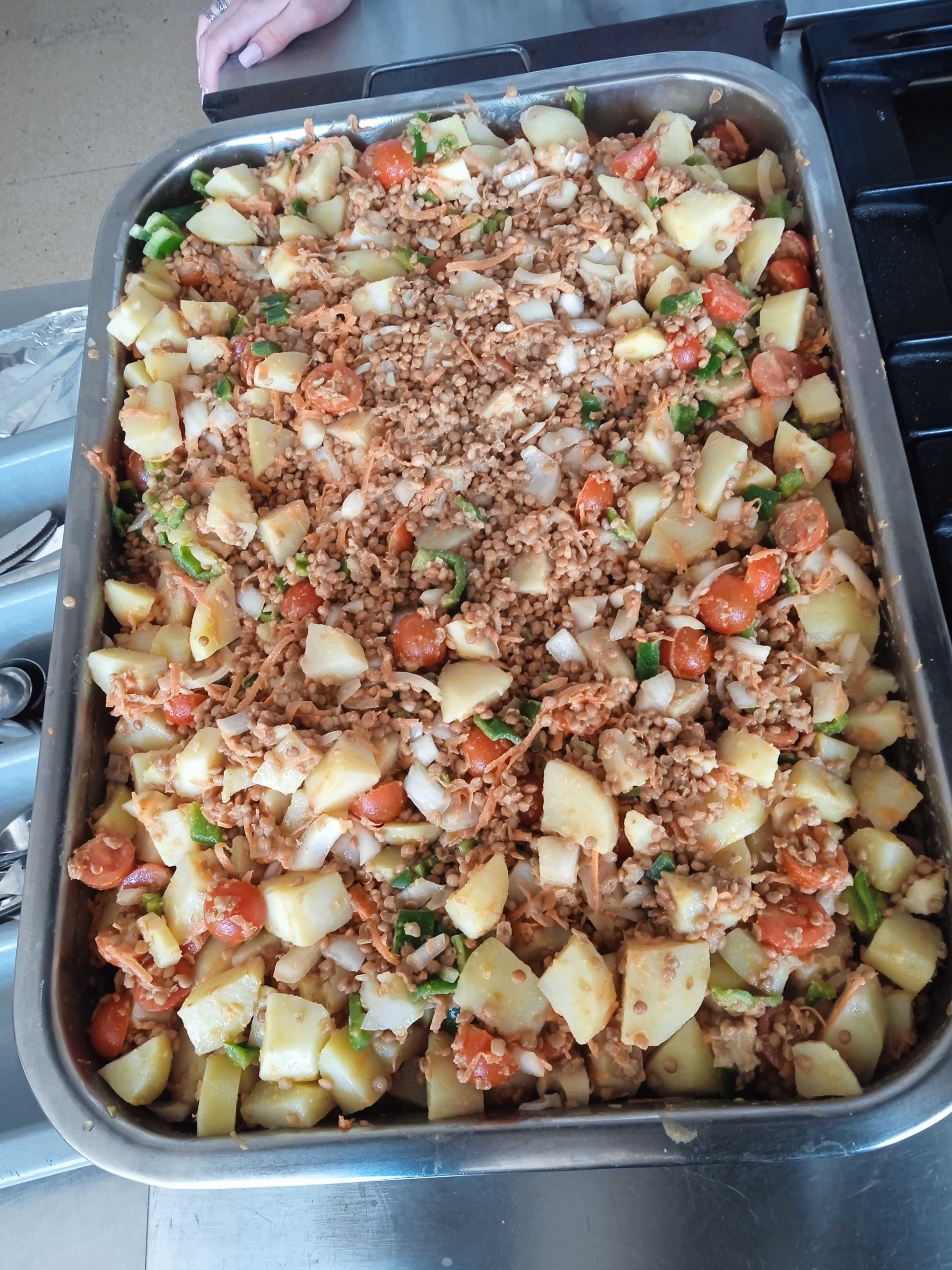 - Por último, añadimos todos los ingredientes a las patatas, mezclamos bien y servimos.