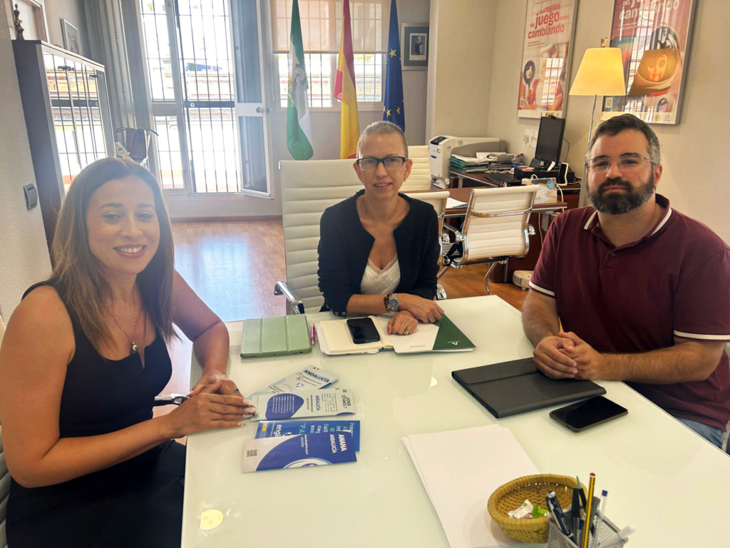 En una reunión clave para avanzar en el apoyo a las mujeres en situación de vulnerabilidad, Fátima Zahra Lajaj, coordinadora del área de Igualdad de la Asociación Engloba, y Santiago Ruiz Galacho, coordinador territorial de la entidad, se encontraron con la directora general del Instituto Andaluz de la Mujer, Olga Carrión Mancebo. Este encuentro tuvo como objetivo compartir los proyectos y servicios que Engloba ofrece a este colectivo y reafirmar el compromiso conjunto con la igualdad de género y la lucha contra la exclusión social.