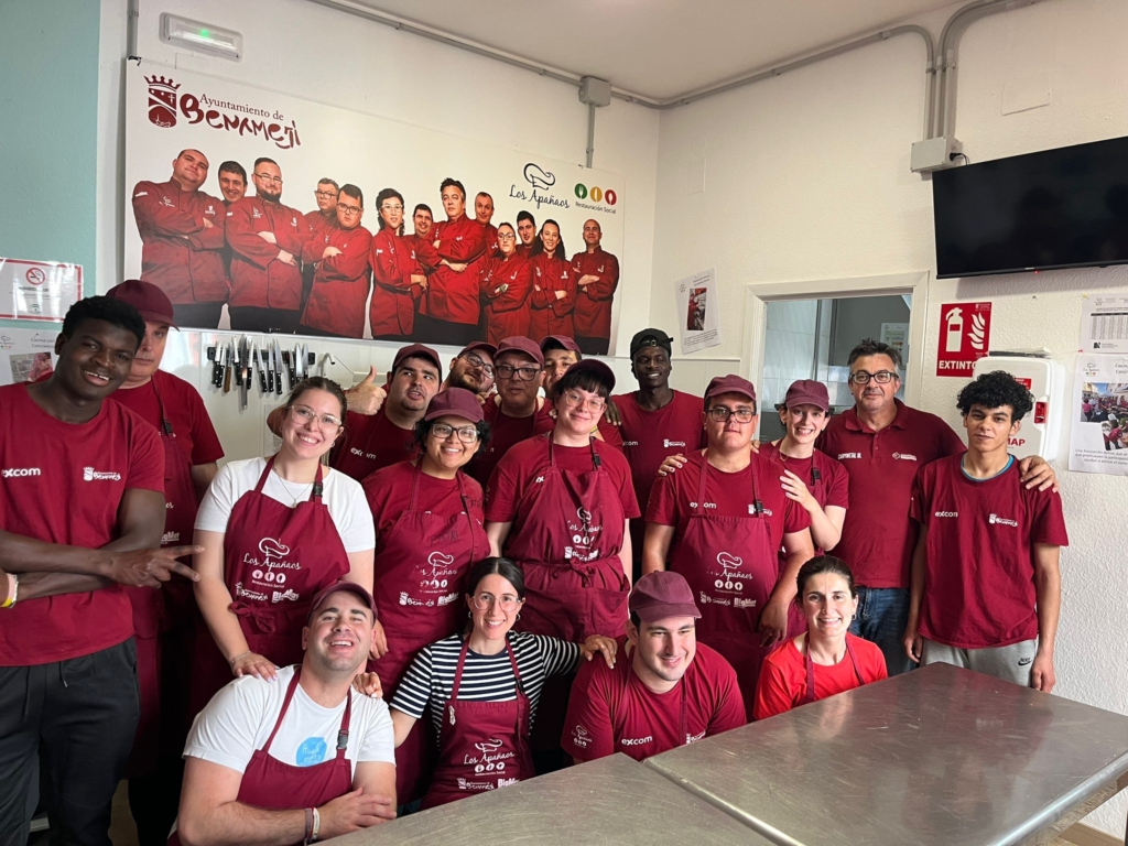 Durante el encuentro, los y las jóvenes pudieron integrarse en la rutina diaria del centro, colaborando en la preparación de menús solidarios destinados a personas mayores en situación de soledad no deseada y a personas sin recursos. Este trabajo cotidiano, impulsado por Los Apañaos, representa una valiosa forma de inclusión laboral para personas con discapacidad y un claro ejemplo de compromiso con los sectores más vulnerables de la comunidad.