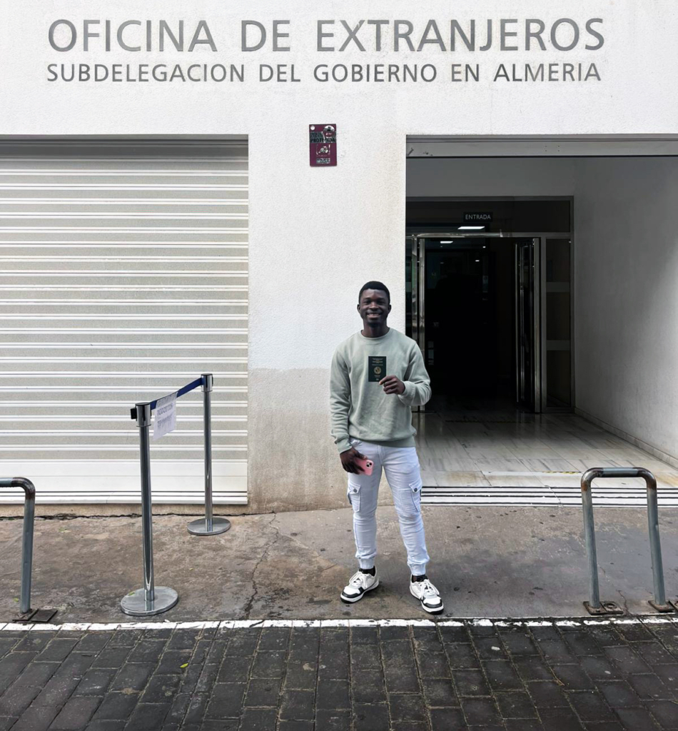 PAI Lanzadera Almería celebra el paso decisivo de Patrick Abisa, joven originario de Ghana, que tras un proceso de acompañamiento y gestiones administrativas ya ha realizado la toma de huellas en Extranjería y podrá recoger próximamente su Tarjeta de Residencia, habilitándole para trabajar en el territorio español.